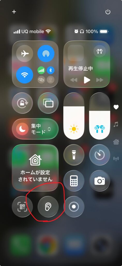 ライブリスニング機能はiPhoneのコントロールセンターから耳のアイコンをタップすれば、使うことができるようになります。