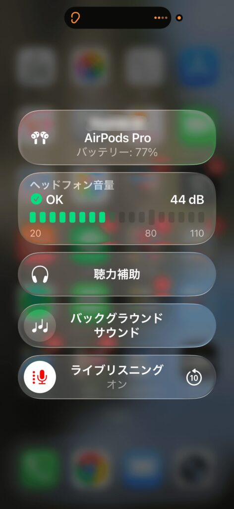 かなり聞き取りずらい場合は「ライブリスニング」機能をONにして、iPhoneのマイクを集音機として使うことで、補うことも可能です。