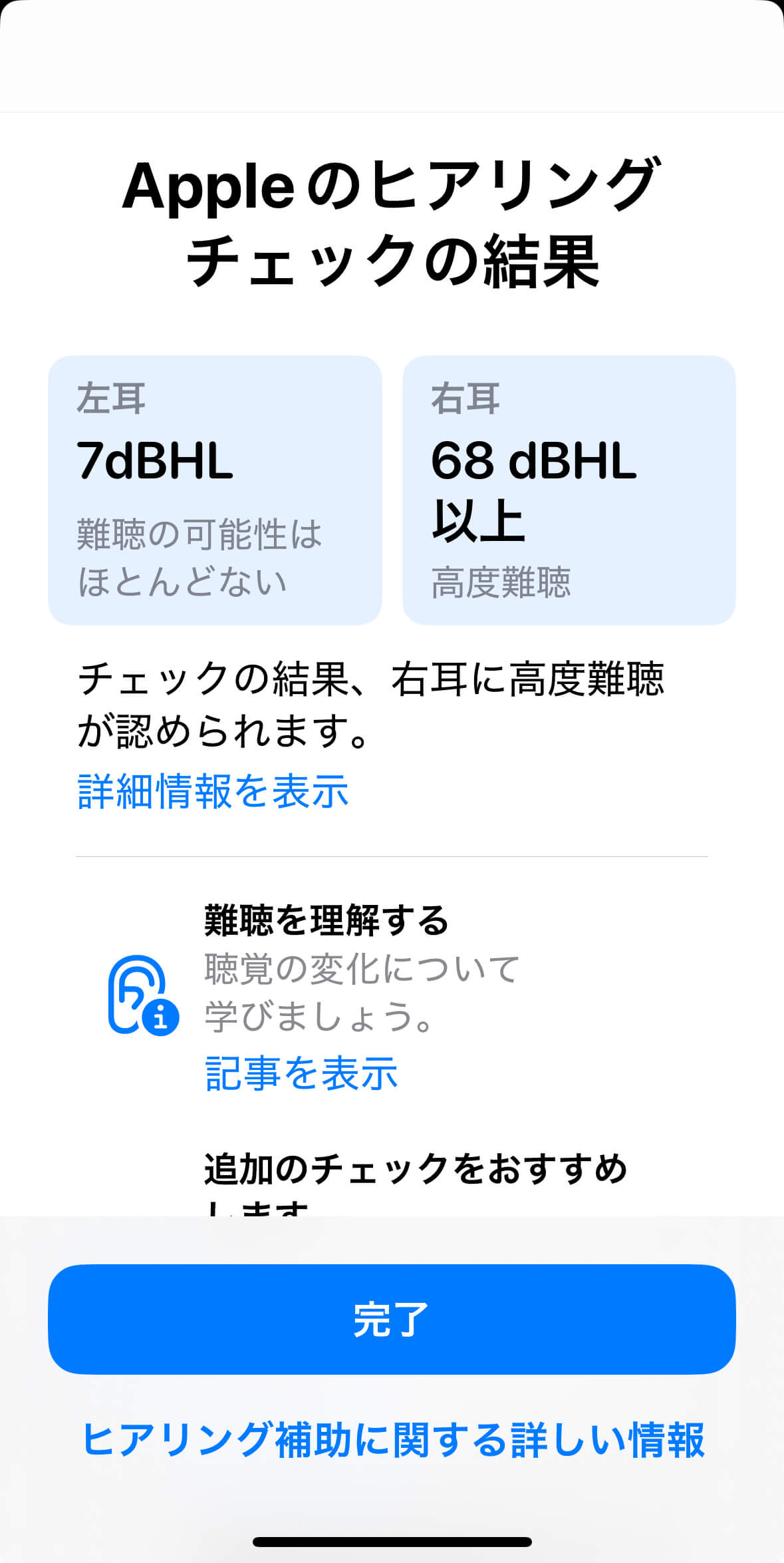残念ながらiPhoneの検査結果では高度難聴との判定。そうなると機能しないらしいので、病院で検査を受けたデータ(オージオグラム)を取り込むことにしました。