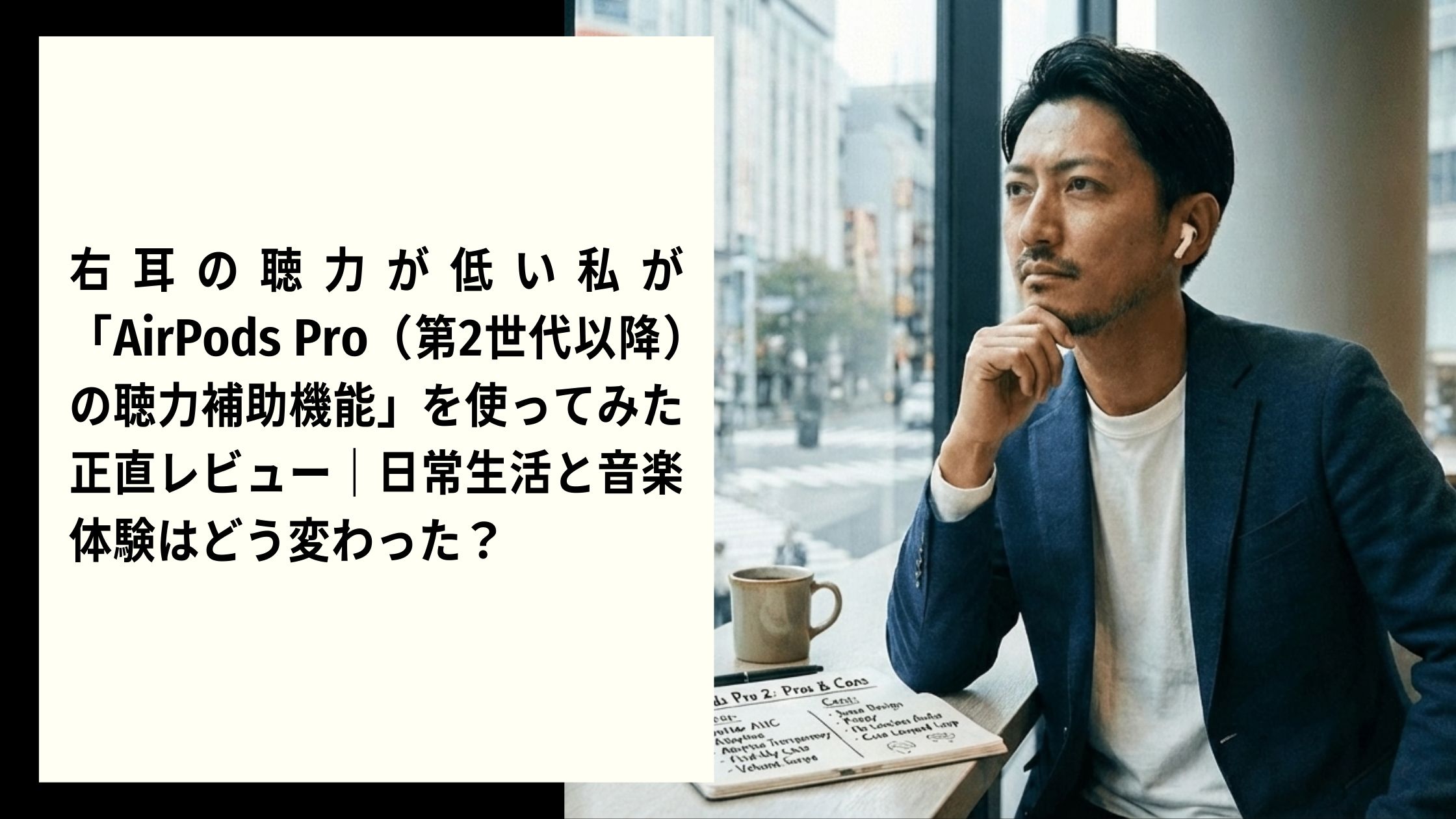 この記事では、右耳の聴力が低い私が実際にAirPods Pro (第2世代以降)を使って感じた変化について、正直に書いていきます。