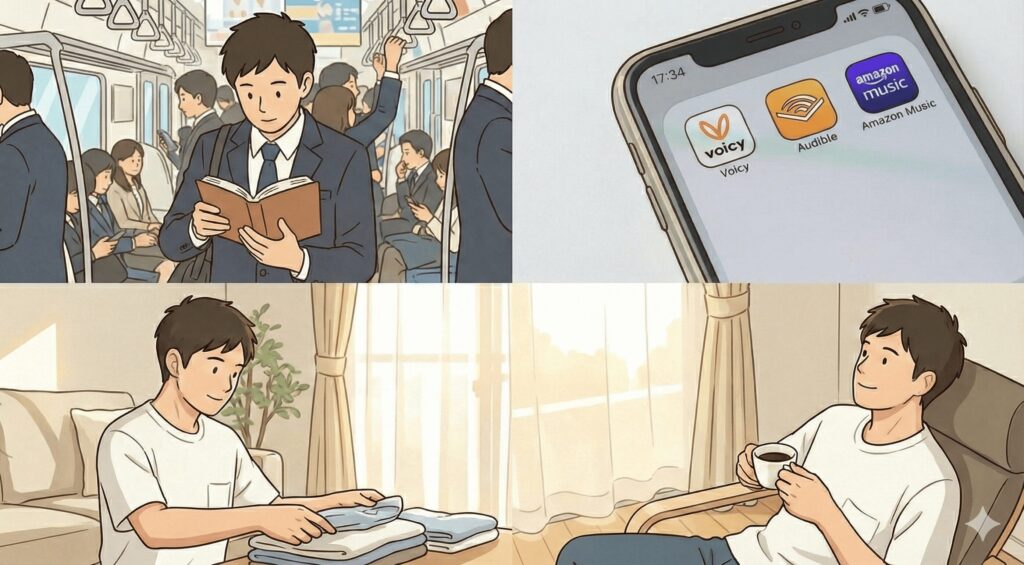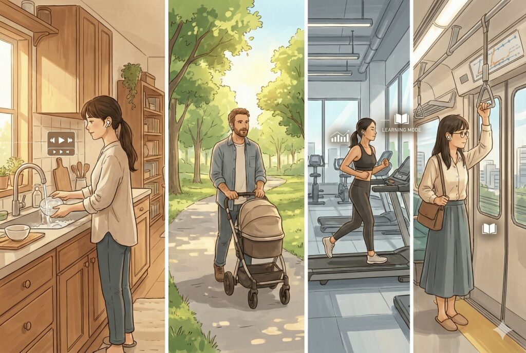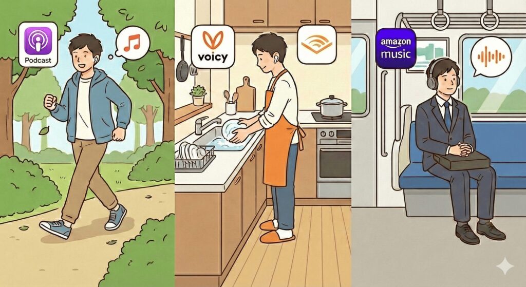 歩いているとき・家事中・移動中などの“ながら時間”に、音声で情報を取り入れる習慣のことです。